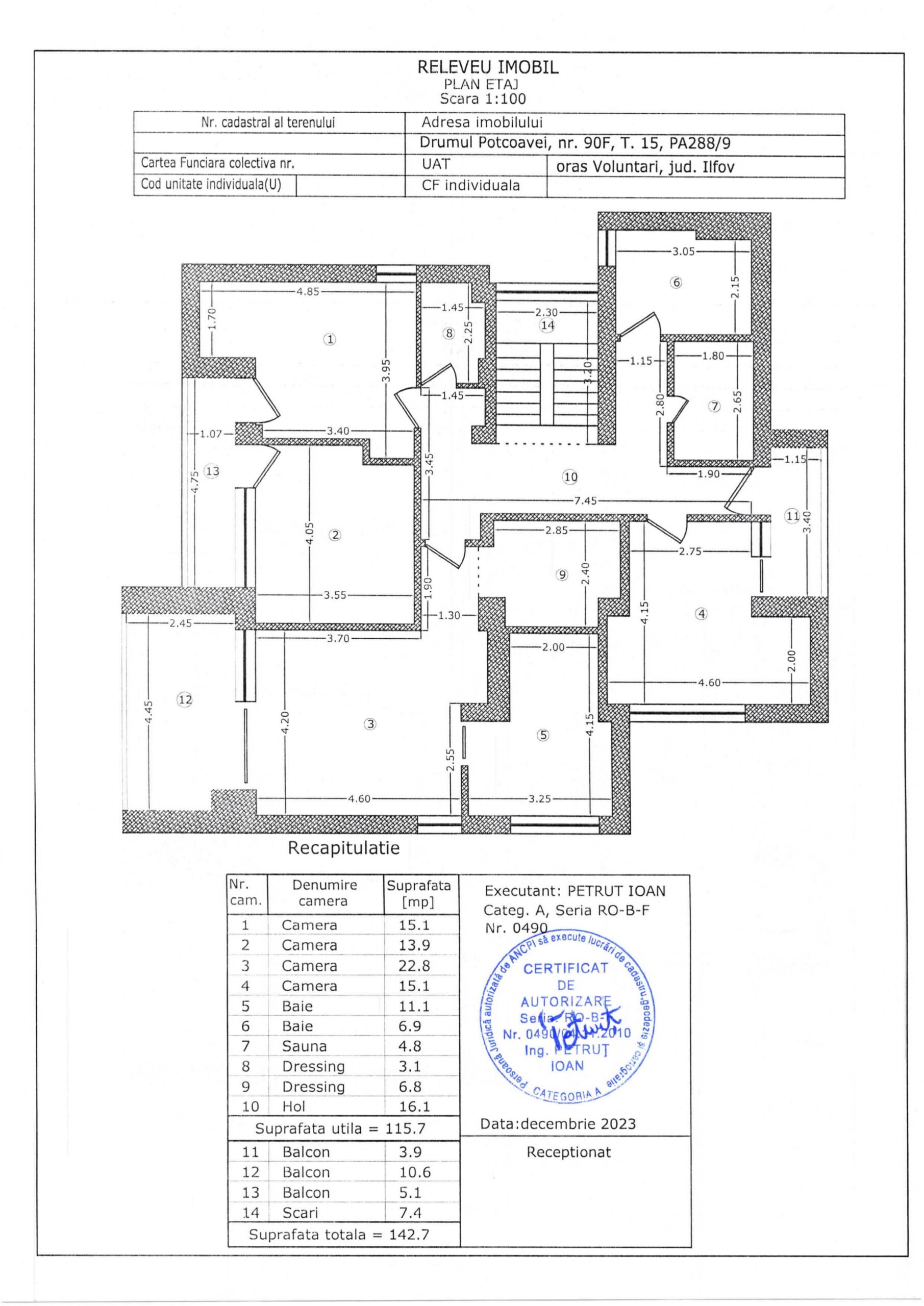 4 dormitoare, 2 băi, dressinguri + saună